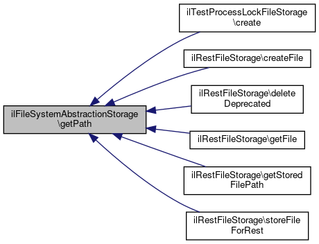 Here is the call graph for this function:| ilFileSystemAbstractionStorage::getPath | ( | ) |