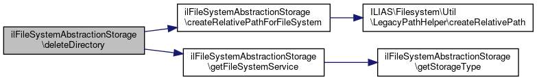 Here is the call graph for this function:| ilFileSystemAbstractionStorage::deleteDirectory | ( | string | $a_abs_name | ) |