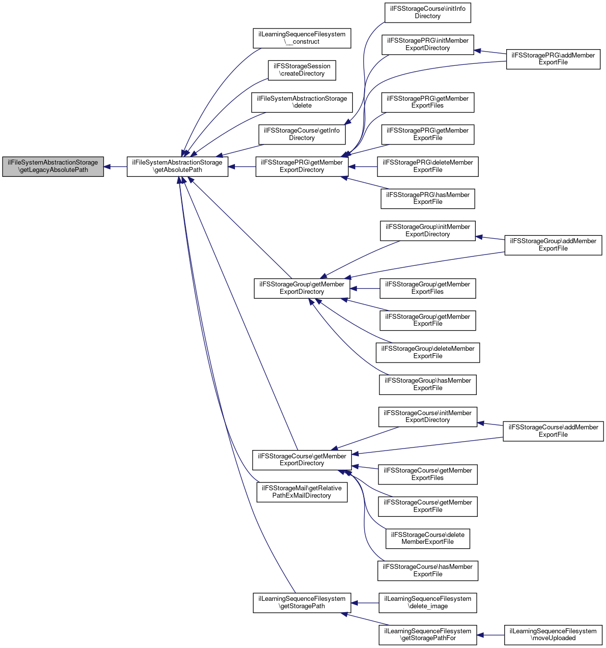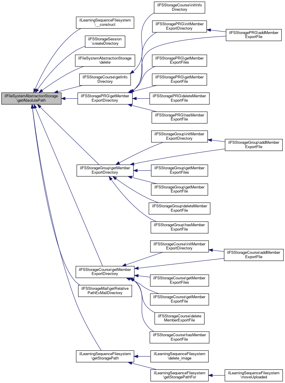 Here is the caller graph for this function:| ilFileSystemAbstractionStorage::getAbsolutePath | ( | ) |
