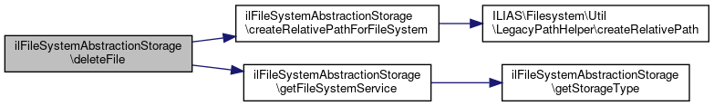 Here is the call graph for this function:| ilFileSystemAbstractionStorage::deleteFile | ( | string | $a_abs_name | ) |