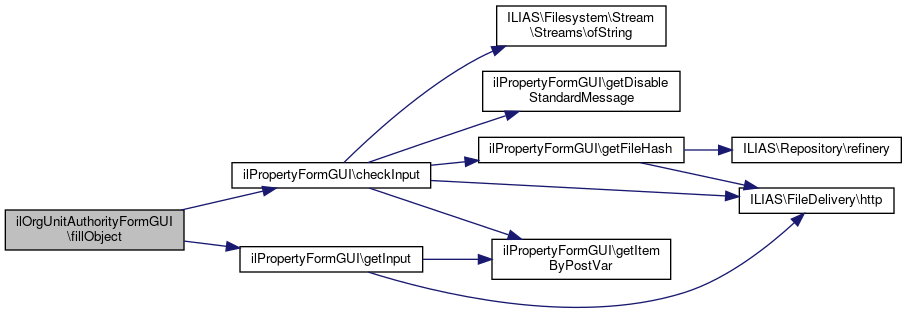 Here is the call graph for this function:| ilOrgUnitAuthorityFormGUI::fillObject | ( | ) |