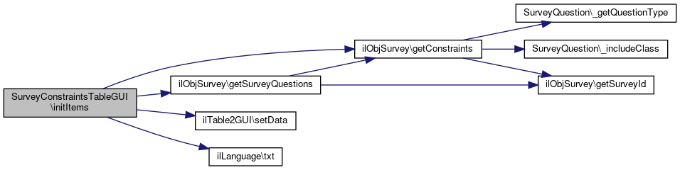 References ilTableGUI\$data, ilTable2GUI\$id, ilTableGUI\$lng, ilTableGUI\$title, ilObjSurvey\getConstraints(), ilObjSurvey\getSurveyQuestions(), ilTable2GUI\setData(), and ilLanguage\txt().