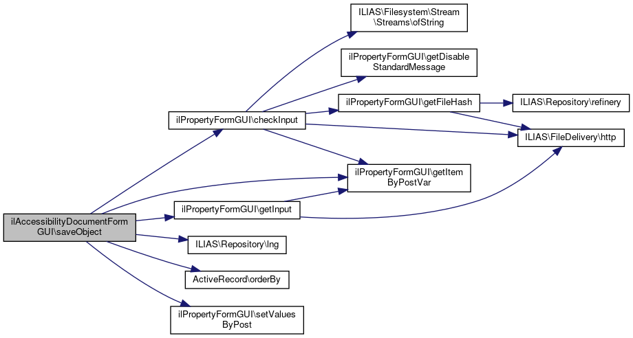 Here is the caller graph for this function:| ilAccessibilityDocumentFormGUI::saveObject | ( | ) |