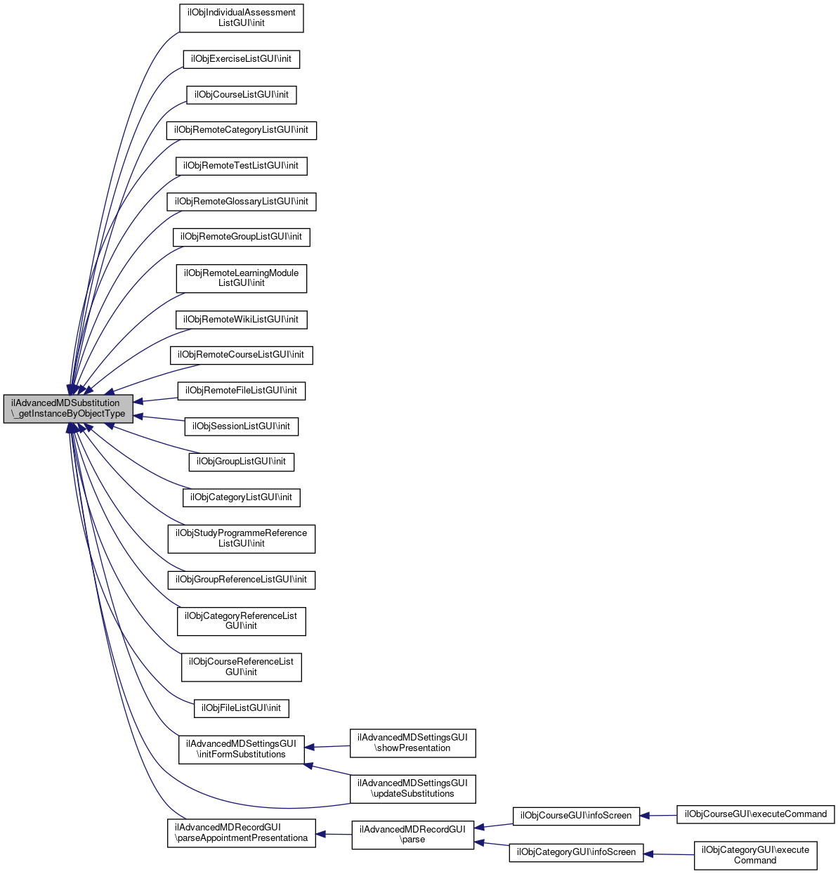 Referenced by ilObjIndividualAssessmentListGUI\init(), ilObjExerciseListGUI\init(), ilObjCourseListGUI\init(), ilObjRemoteCategoryListGUI\init(), ilObjRemoteTestListGUI\init(), ilObjRemoteGlossaryListGUI\init(), ilObjRemoteGroupListGUI\init(), ilObjRemoteLearningModuleListGUI\init(), ilObjRemoteWikiListGUI\init(), ilObjRemoteCourseListGUI\init(), ilObjRemoteFileListGUI\init(), ilObjSessionListGUI\init(), ilObjGroupListGUI\init(), ilObjCategoryListGUI\init(), ilObjStudyProgrammeReferenceListGUI\init(), ilObjGroupReferenceListGUI\init(), ilObjCategoryReferenceListGUI\init(), ilObjCourseReferenceListGUI\init(), ilObjFileListGUI\init(), ilAdvancedMDSettingsGUI\initFormSubstitutions(), ilAdvancedMDRecordGUI\parseAppointmentPresentationa(), and ilAdvancedMDSettingsGUI\updateSubstitutions().