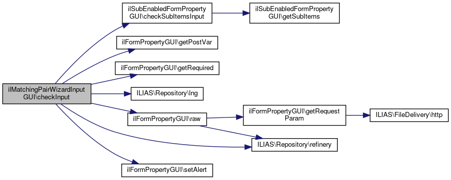 Here is the call graph for this function:| ilMatchingPairWizardInputGUI::checkInput | ( | ) |