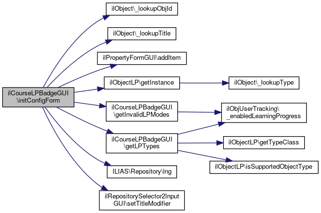 References ilObject\_lookupObjId(), ilObject\_lookupTitle(), ilPropertyFormGUI\addItem(), ilObjectLP\getInstance(), getInvalidLPModes(), getLPTypes(), ILIAS\Repository\lng(), and ilRepositorySelector2InputGUI\setTitleModifier().