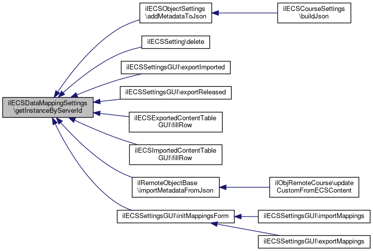 Referenced by ilECSObjectSettings\addMetadataToJson(), ilECSSetting\delete(), ilECSSettingsGUI\exportImported(), ilECSSettingsGUI\exportReleased(), ilECSExportedContentTableGUI\fillRow(), ilECSImportedContentTableGUI\fillRow(), ilRemoteObjectBase\importMetadataFromJson(), and ilECSSettingsGUI\initMappingsForm().