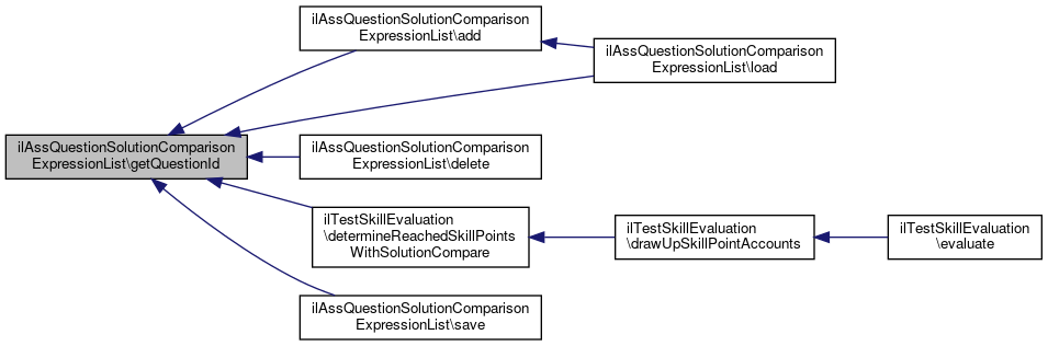 Here is the caller graph for this function:| ilAssQuestionSolutionComparisonExpressionList::getQuestionId | ( | ) |