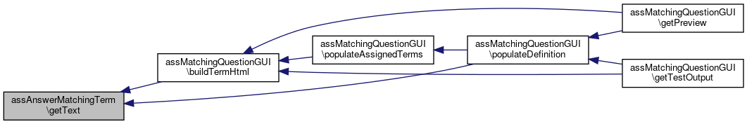 Here is the caller graph for this function:| assAnswerMatchingTerm::getText | ( | ) |