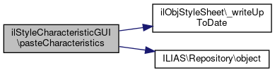 Here is the call graph for this function:| ilStyleCharacteristicGUI::pasteCharacteristicsWithinStyle | ( | ) |