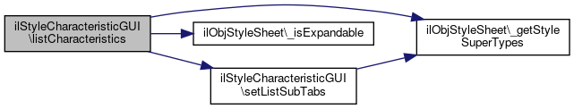 Here is the call graph for this function:| ilStyleCharacteristicGUI::setListSubTabs | ( | ) |