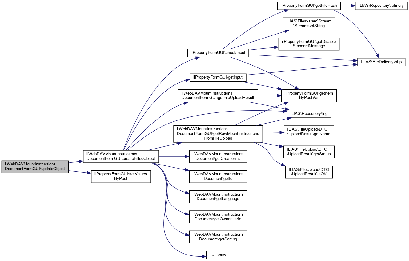 Here is the call graph for this function:| ilWebDAVMountInstructionsDocumentFormGUI::updateObject | ( | ) |