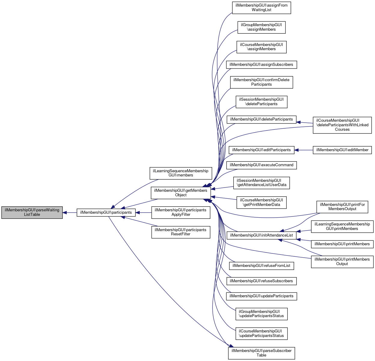References activateSubTab(), ILIAS\Repository\ctrl(), getParentObject(), getParticipantTableTitle(), parseSubscriberTable(), parseWaitingListTable(), and showParticipantsToolbar().