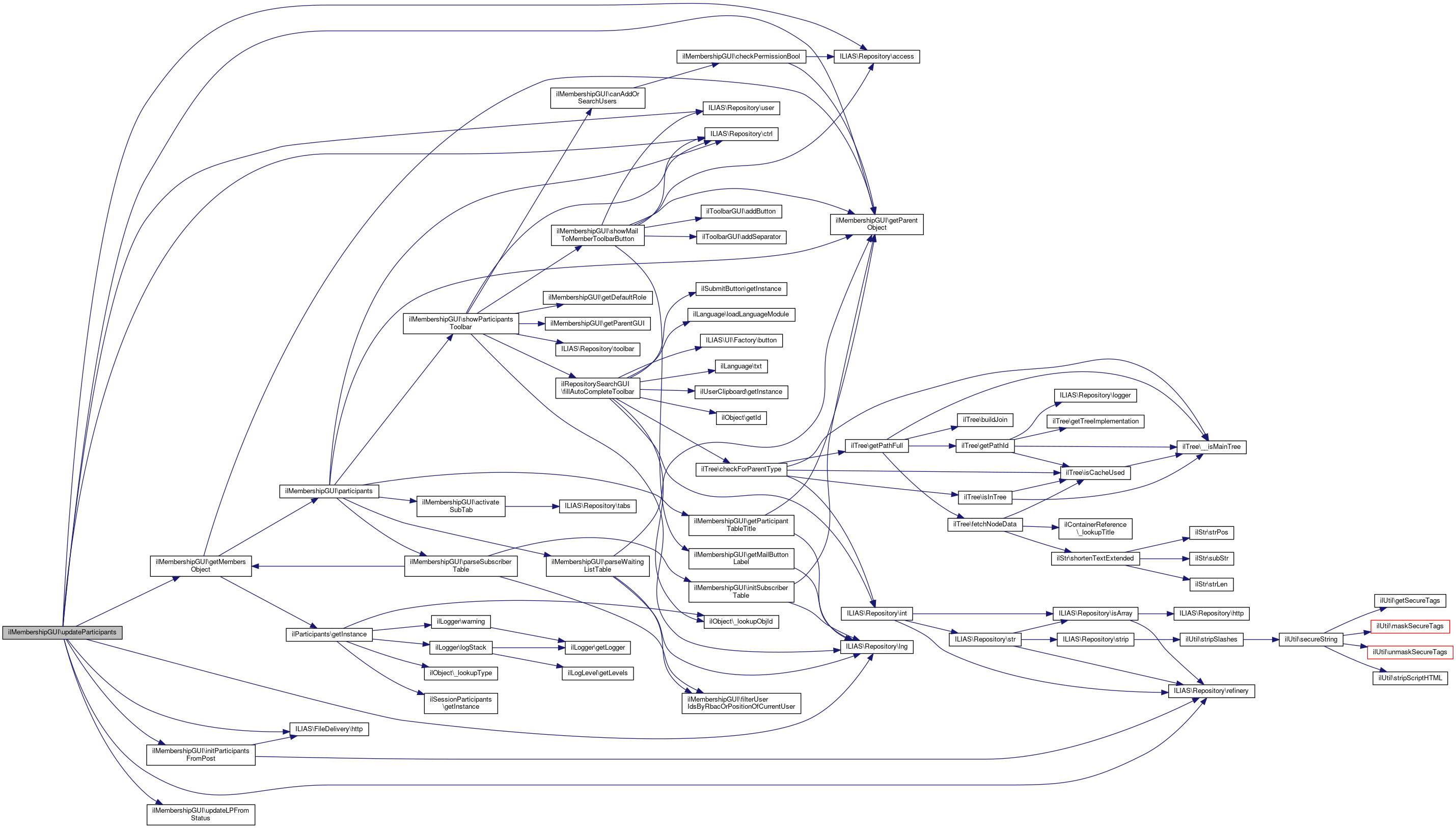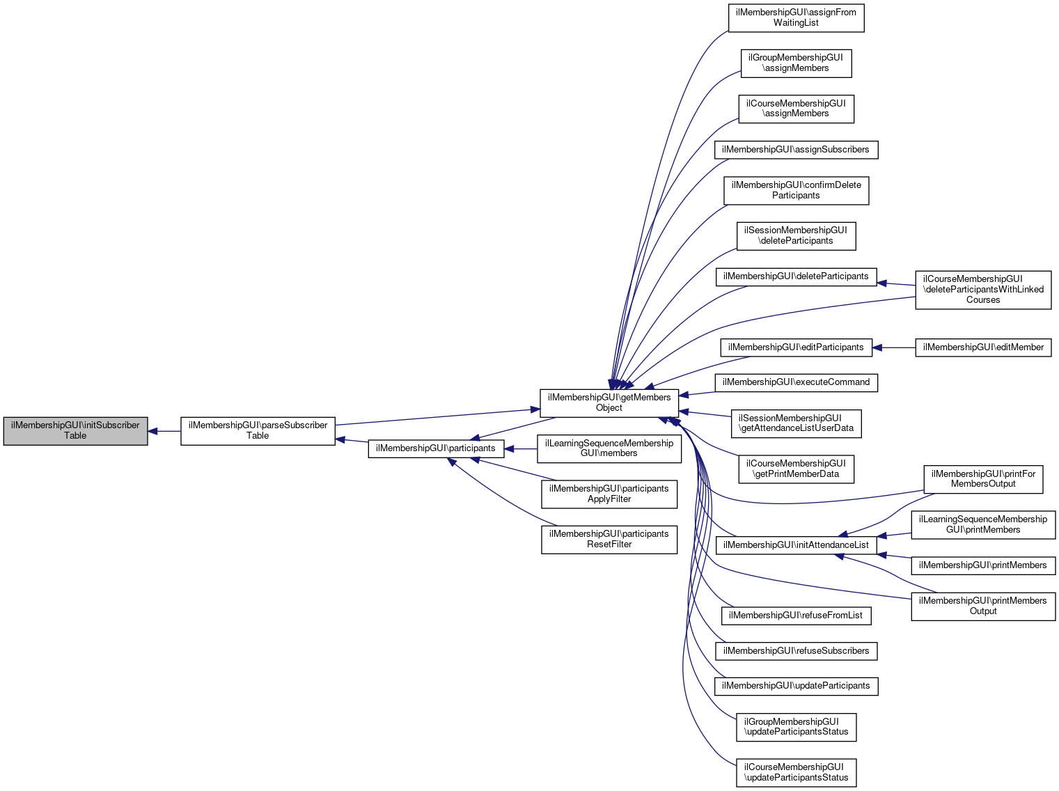 Here is the caller graph for this function:| ilMembershipGUI::updateParticipants | ( | ) |