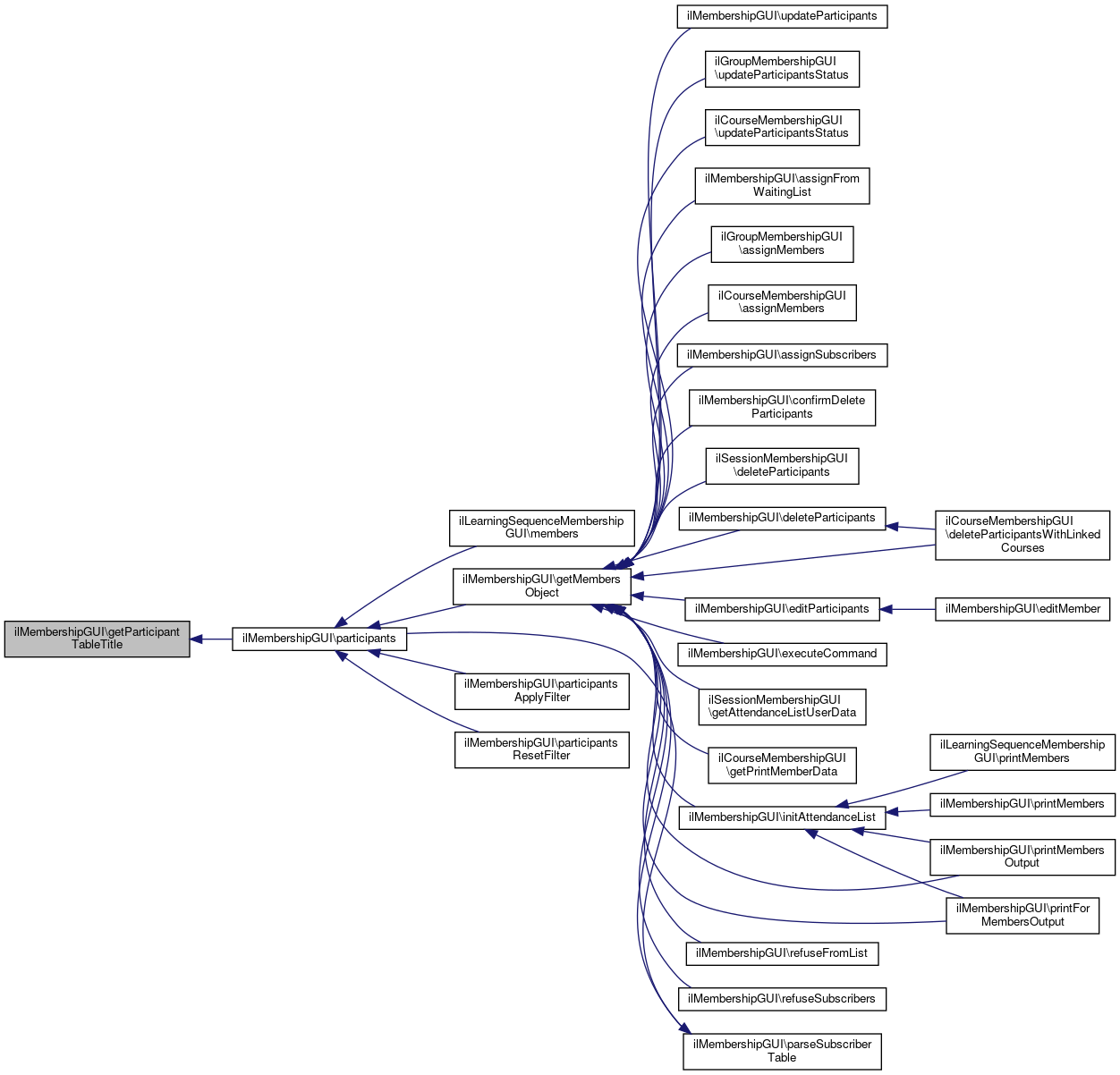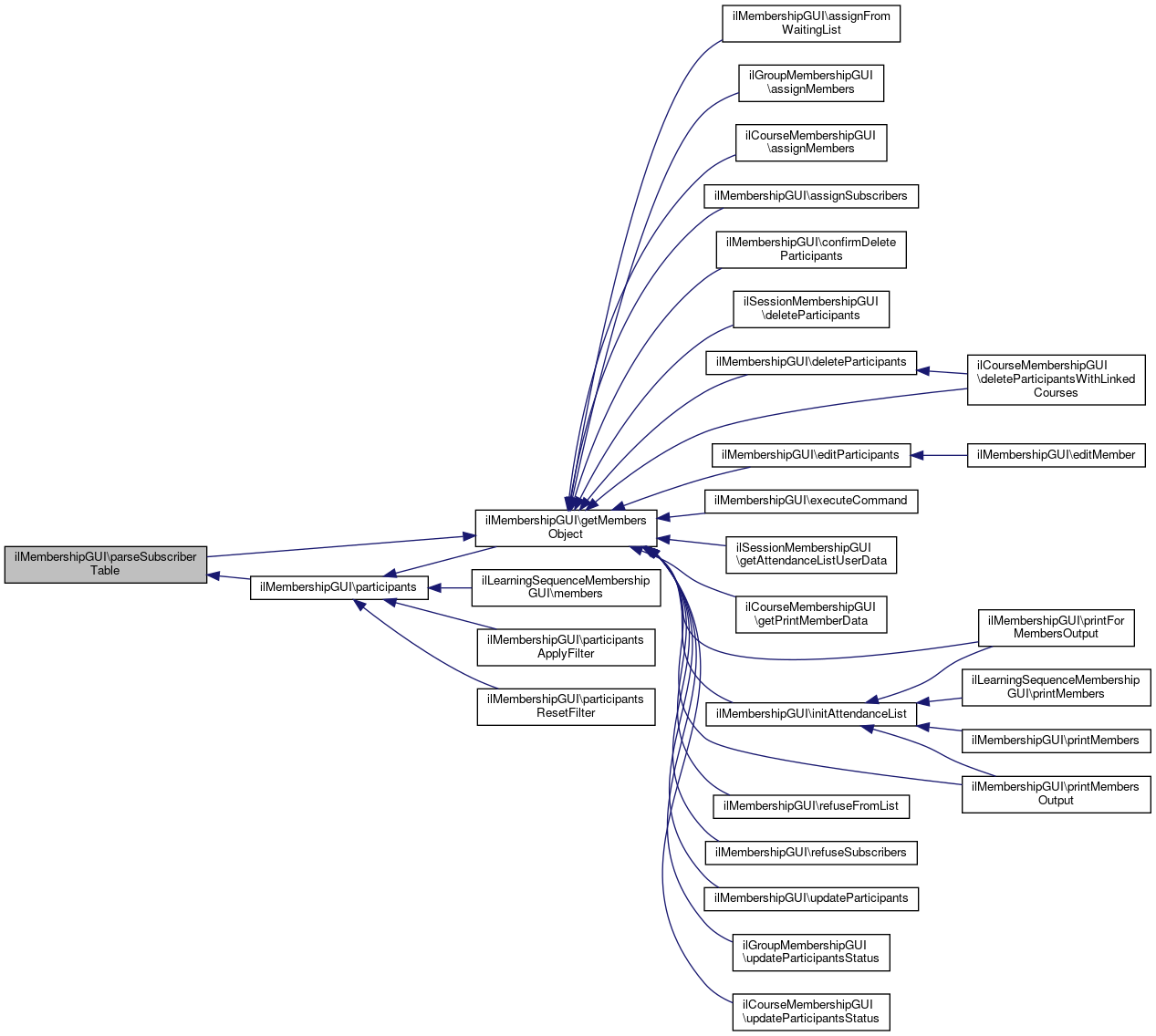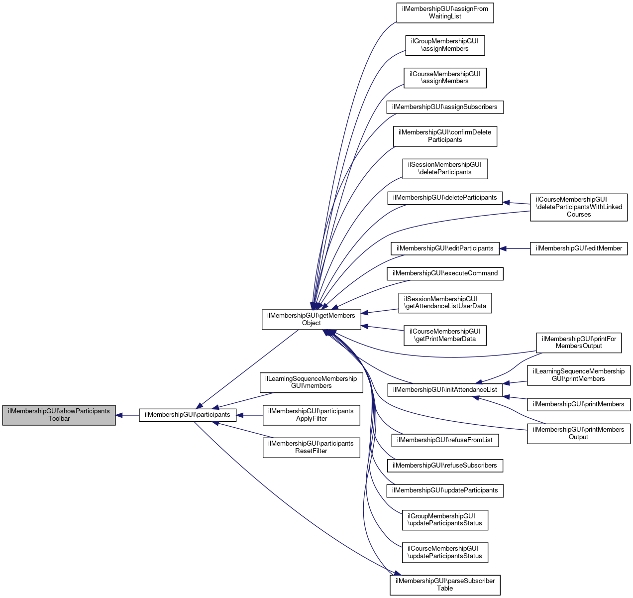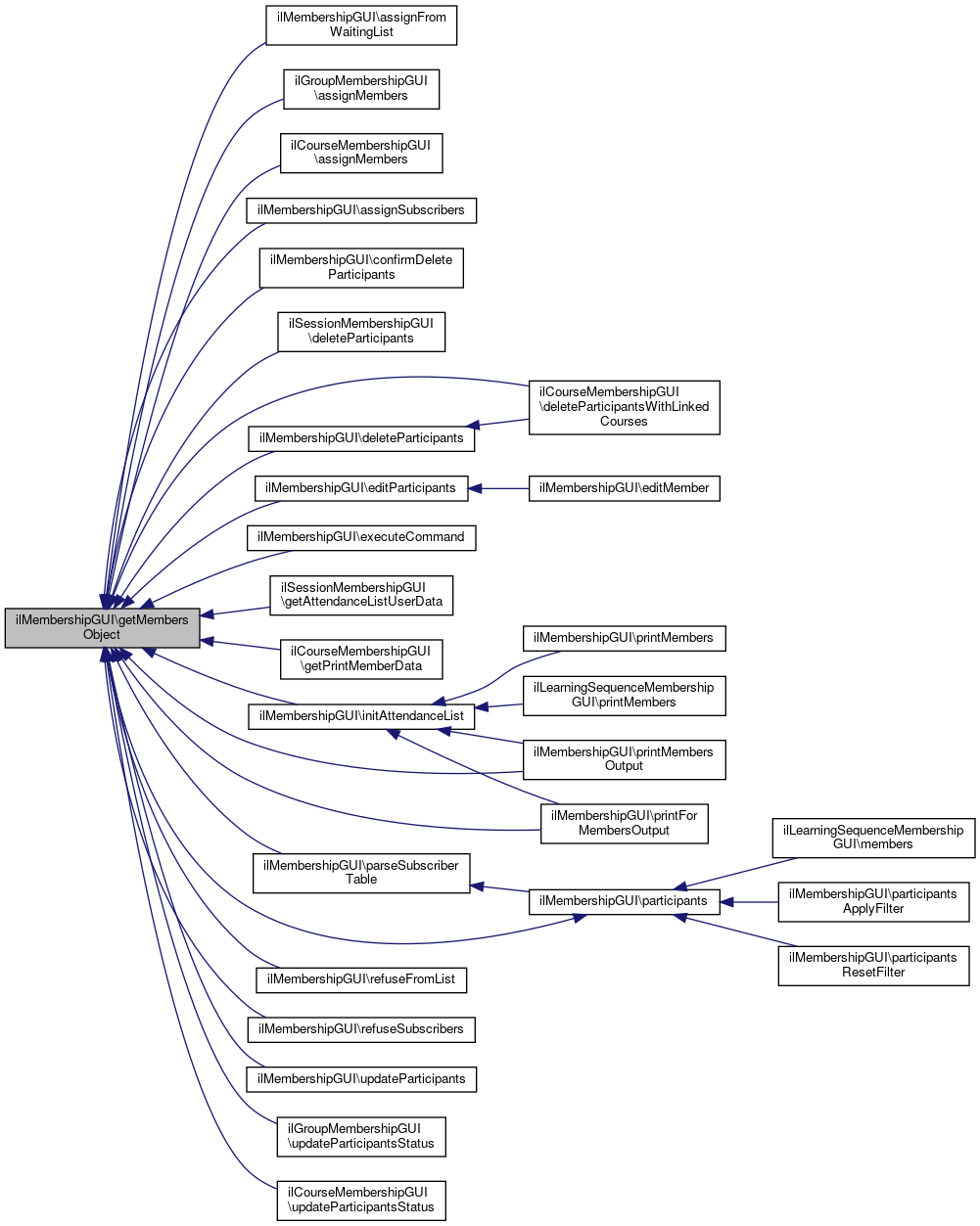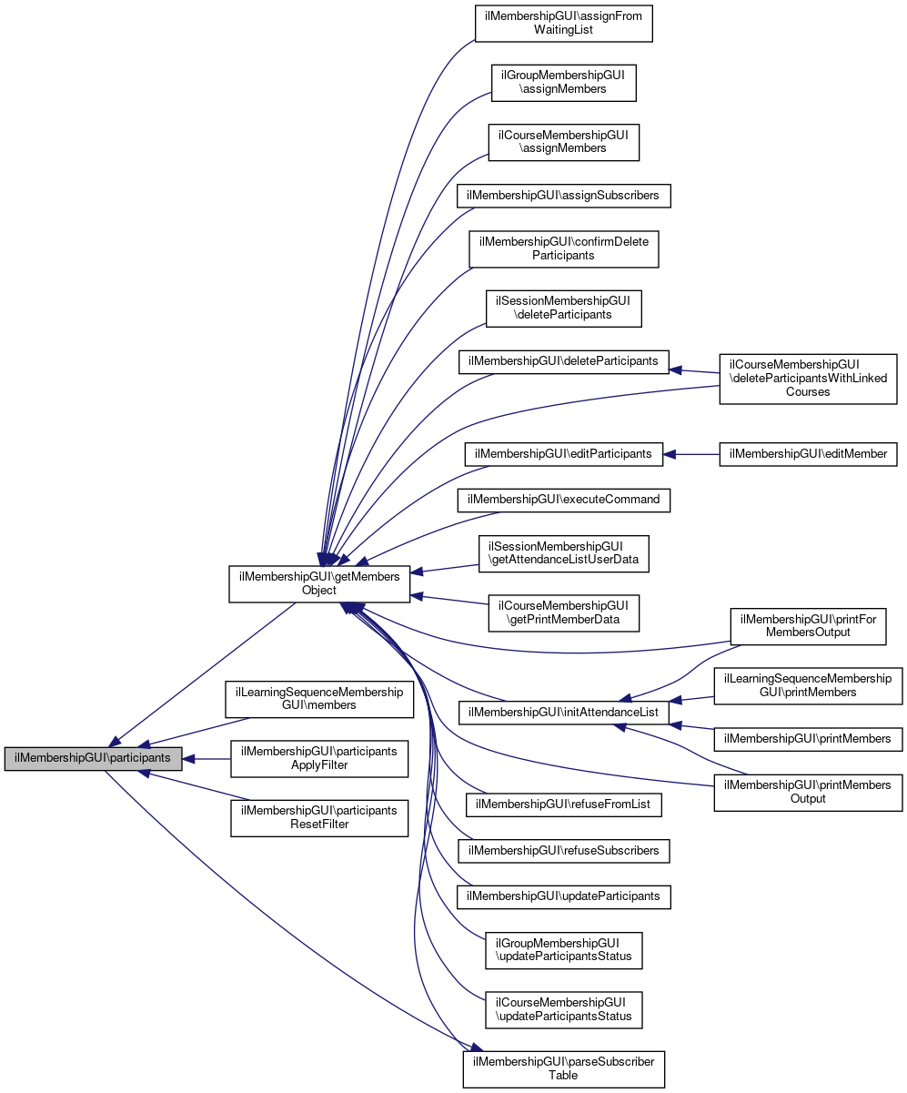 Referenced by ilSessionMembershipGUI\confirmDeleteParticipants(), confirmDeleteParticipants(), ilSessionMembershipGUI\deleteParticipants(), ilCourseMembershipGUI\deleteParticipantsWithLinkedCourses(), getMembersObject(), ilGroupMembershipGUI\updateParticipantsStatus(), and ilLearningSequenceMembershipGUI\updateParticipantsStatus().