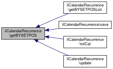 Here is the caller graph for this function:| ilCalendarRecurrence::setBYSETPOS | ( | string | $a_by | ) |
