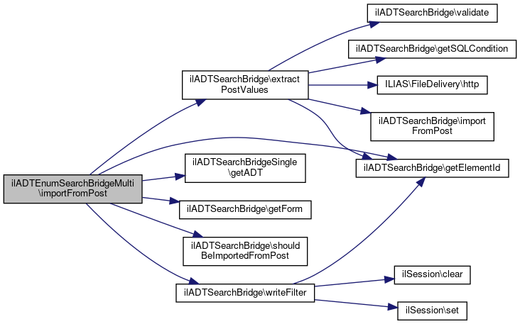 Here is the call graph for this function:| ilADTEnumSearchBridgeMulti::importFromPost | ( | array | $a_post = null | ) |