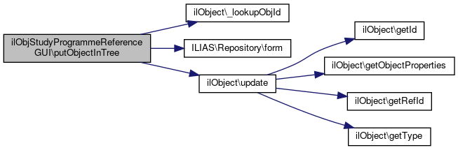 Here is the call graph for this function:| ilObjStudyProgrammeReferenceGUI::putObjectInTree | ( | ilObject | $obj, |
