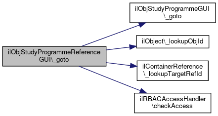 References ilObjectGUI\$access, $DIC, ilObjStudyProgrammeGUI\_goto(), ilObject\_lookupObjId(), ilContainerReference\_lookupTargetRefId(), and ilRBACAccessHandler\checkAccess().