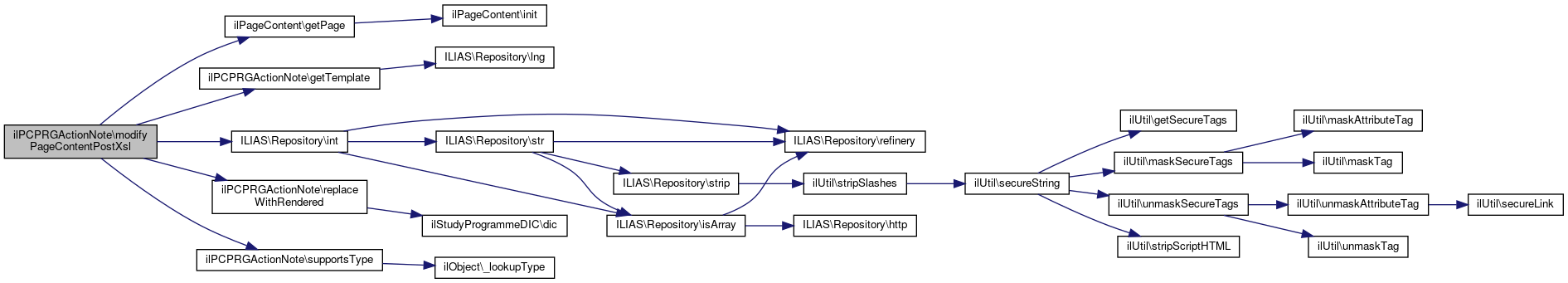 Here is the call graph for this function:| ilPCPRGActionNote::modifyPageContentPostXsl | ( | string | $a_output, |