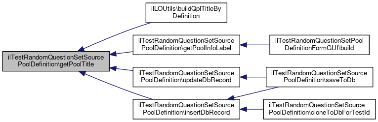 Here is the caller graph for this function:| ilTestRandomQuestionSetSourcePoolDefinition::getPoolTitle | ( | ) |