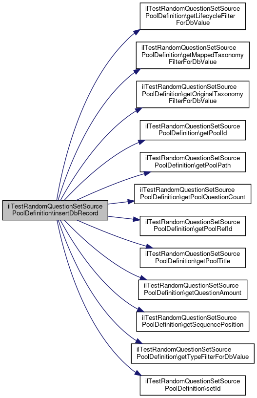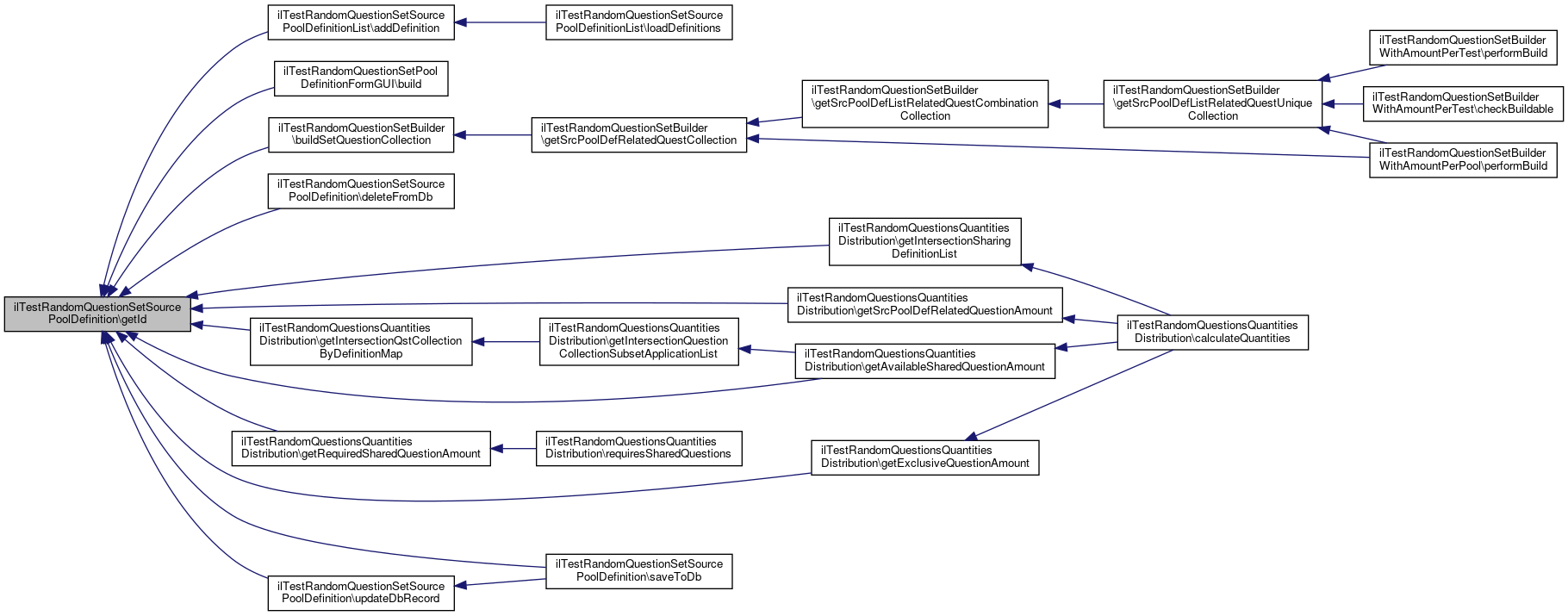 Referenced by ilTestRandomQuestionSetSourcePoolDefinitionList\addDefinition(), ilTestRandomQuestionSetPoolDefinitionFormGUI\build(), ilTestRandomQuestionSetBuilder\buildSetQuestionCollection(), deleteFromDb(), ilTestRandomQuestionsQuantitiesDistribution\getAvailableSharedQuestionAmount(), ilTestRandomQuestionsQuantitiesDistribution\getExclusiveQuestionAmount(), ilTestRandomQuestionsQuantitiesDistribution\getIntersectionQstCollectionByDefinitionMap(), ilTestRandomQuestionsQuantitiesDistribution\getIntersectionSharingDefinitionList(), ilTestRandomQuestionsQuantitiesDistribution\getRequiredSharedQuestionAmount(), ilTestRandomQuestionsQuantitiesDistribution\getSrcPoolDefRelatedQuestionAmount(), saveToDb(), and updateDbRecord().