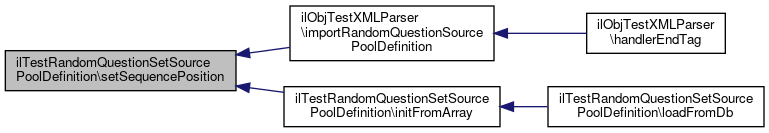 Here is the caller graph for this function:| ilTestRandomQuestionSetSourcePoolDefinition::setSequencePosition | ( | int | $sequence_position | ) |