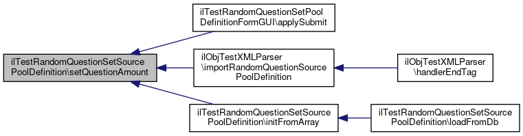 Here is the caller graph for this function:| ilTestRandomQuestionSetSourcePoolDefinition::setQuestionAmount | ( | ?int | $question_amount | ) |