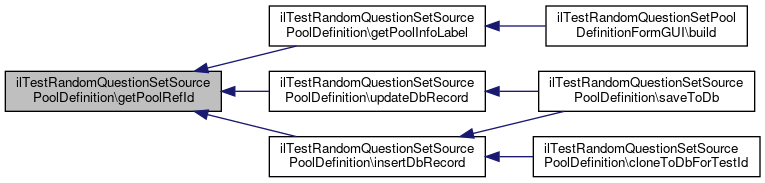 Here is the caller graph for this function:| ilTestRandomQuestionSetSourcePoolDefinition::getPoolRefId | ( | ) |
