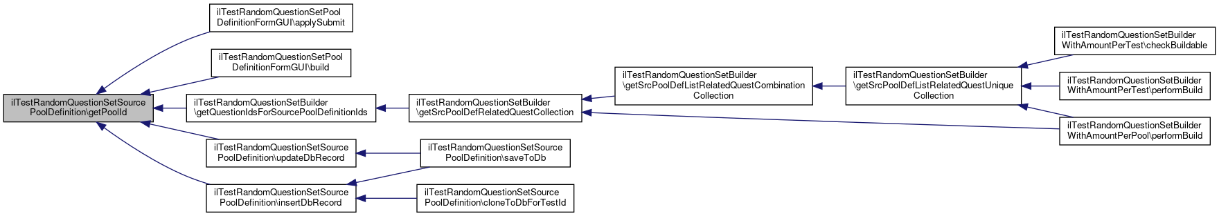 Here is the caller graph for this function:| ilTestRandomQuestionSetSourcePoolDefinition::getPoolId | ( | ) |