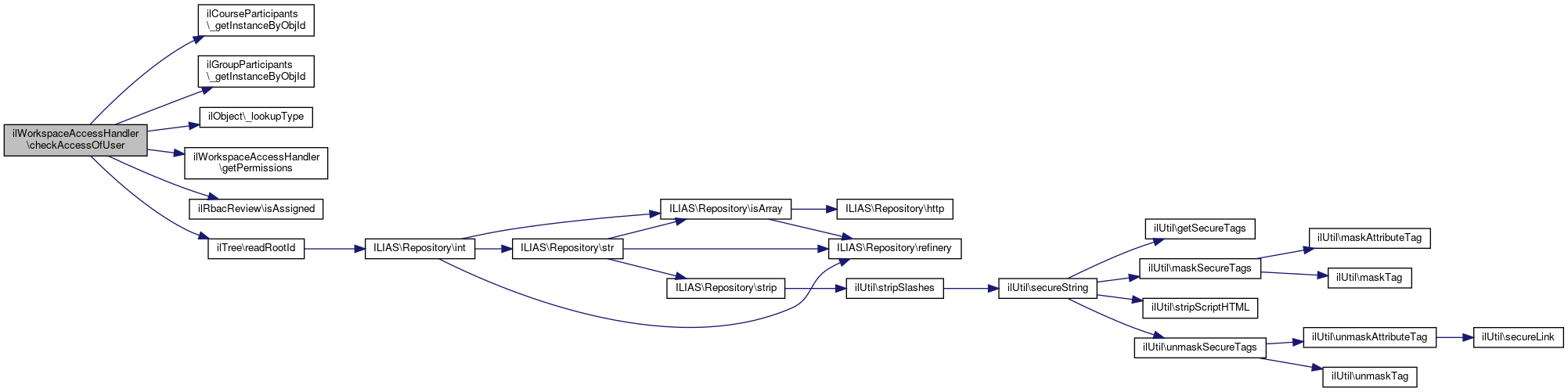 Here is the call graph for this function:| ilWorkspaceAccessHandler::checkAccessOfUser | ( | ilTree | $a_tree, |