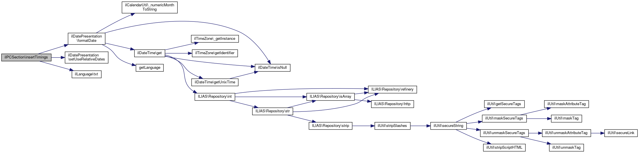 Here is the call graph for this function:| ilPCSection::insertTimings | ( | string | $a_html | ) |