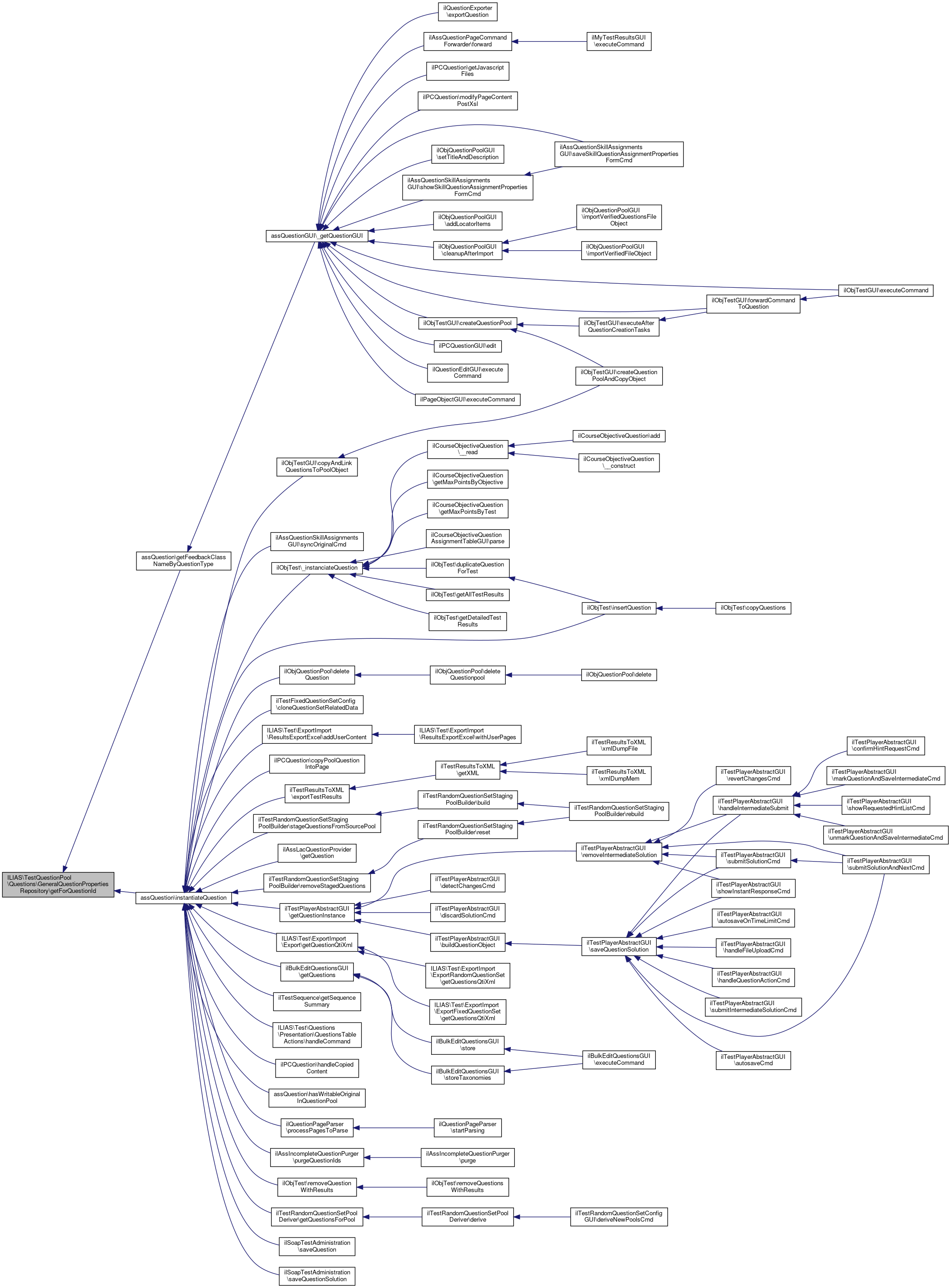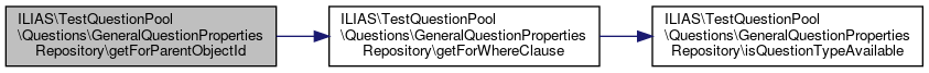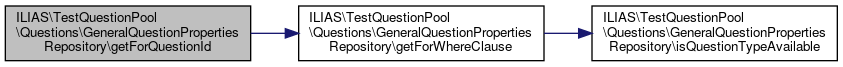 Here is the call graph for this function:| ILIAS\TestQuestionPool\Questions\GeneralQuestionPropertiesRepository::getForQuestionId | ( | int | $question_id | ) |