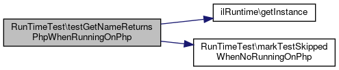 Here is the call graph for this function:| RunTimeTest::testGetNameReturnsPhpWhenRunningOnPhp | ( | ) |