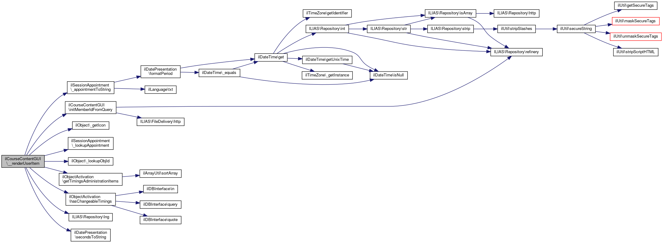 Here is the call graph for this function:| ilCourseContentGUI::__renderUserItem | ( | array | $item, |