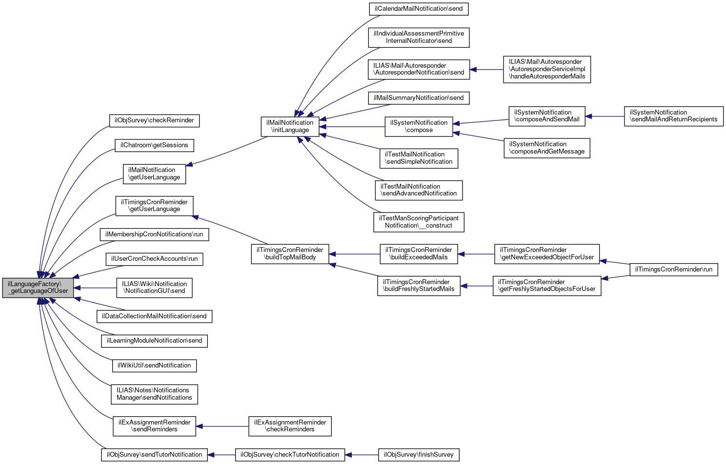 Referenced by ilObjSurvey\checkReminder(), ilChatroom\getSessions(), ilMailNotification\getUserLanguage(), ilTimingsCronReminder\getUserLanguage(), ilMembershipCronNotifications\run(), ilUserCronCheckAccounts\run(), ILIAS\Wiki\Notification\NotificationGUI\send(), ilDataCollectionMailNotification\send(), ilLearningModuleNotification\send(), ilWikiUtil\sendNotification(), ILIAS\Notes\NotificationsManager\sendNotifications(), ilExAssignmentReminder\sendReminders(), and ilObjSurvey\sendTutorNotification().