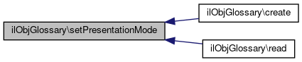 Here is the caller graph for this function:| ilObjGlossary::setPresentationMode | ( | string | $a_val | ) |