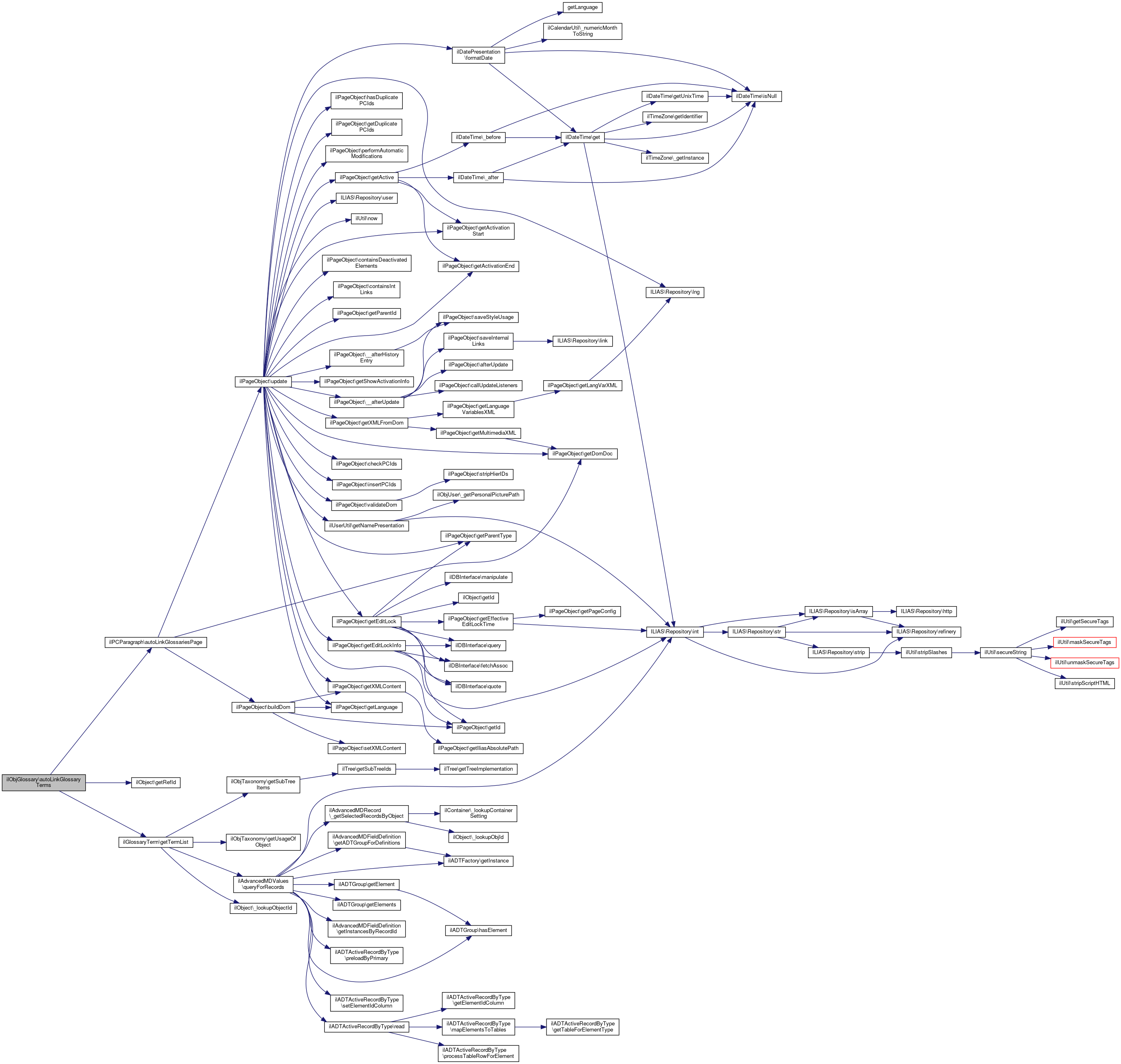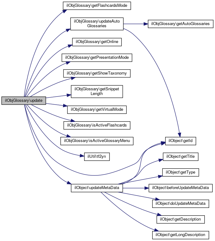 Here is the call graph for this function:| ilObjGlossary::updateAutoGlossaries | ( | ) |