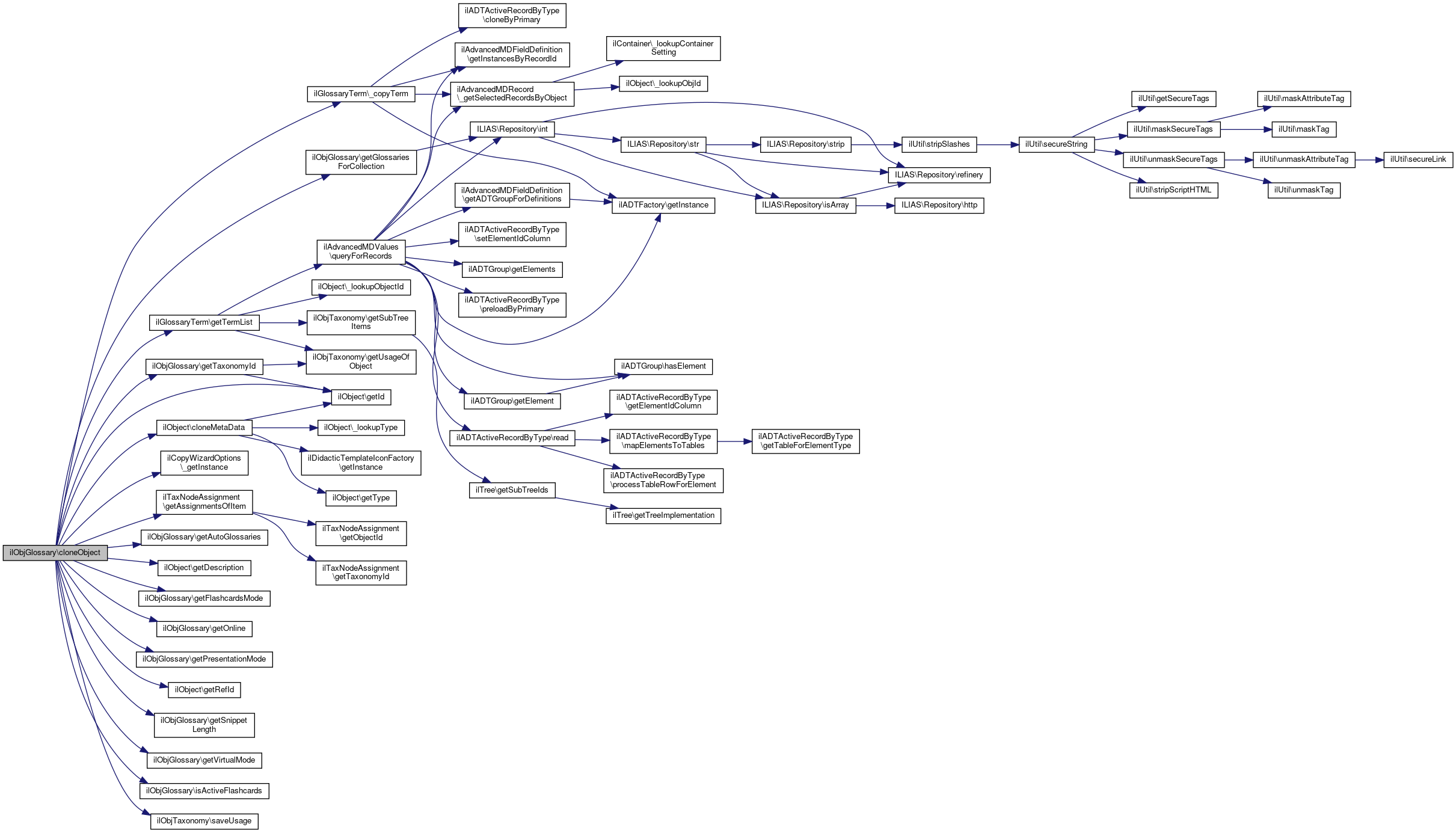 Collaboration diagram for ilObjGlossary:Public Member Functions | |