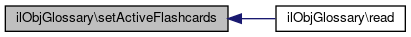 Here is the caller graph for this function:| ilObjGlossary::setActiveFlashcards | ( | bool | $a_flash | ) |