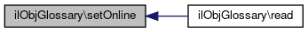 Here is the caller graph for this function:| ilObjGlossary::setOnline | ( | bool | $a_online | ) |