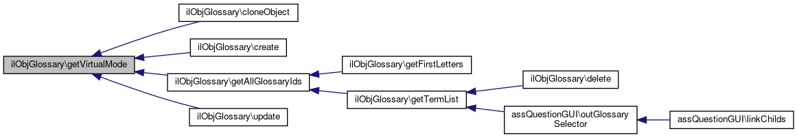 Here is the caller graph for this function:| ilObjGlossary::getVirtualMode | ( | ) |