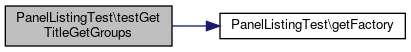 Here is the caller graph for this function:| PanelListingTest::testGetTitleGetGroups | ( | ) |