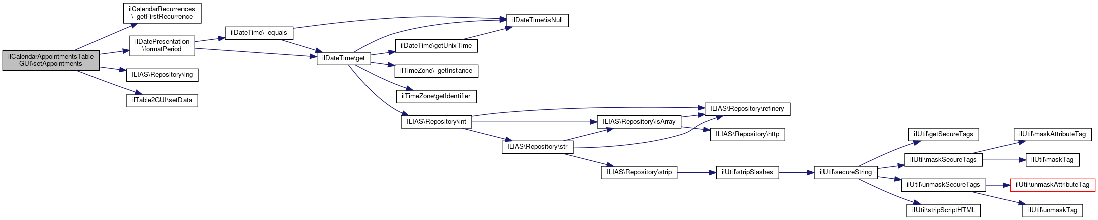 Here is the call graph for this function:| ilCalendarAppointmentsTableGUI::setAppointments | ( | array | $a_apps | ) |