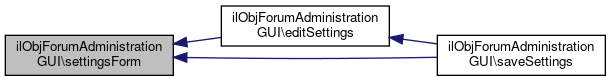 Here is the caller graph for this function:| ilObjForumAdministrationGUI::editSettings | ( | Form | $form = null | ) |