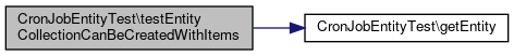 Here is the call graph for this function:| CronJobEntityTest::testEntityCollectionCanBeCreatedWithItems | ( | ) |