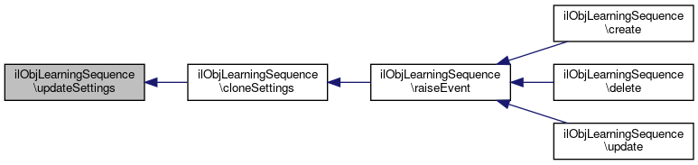 Here is the call graph for this function:| ilObjLearningSequence::updateSettings | ( | ilLearningSequenceSettings | $settings | ) |