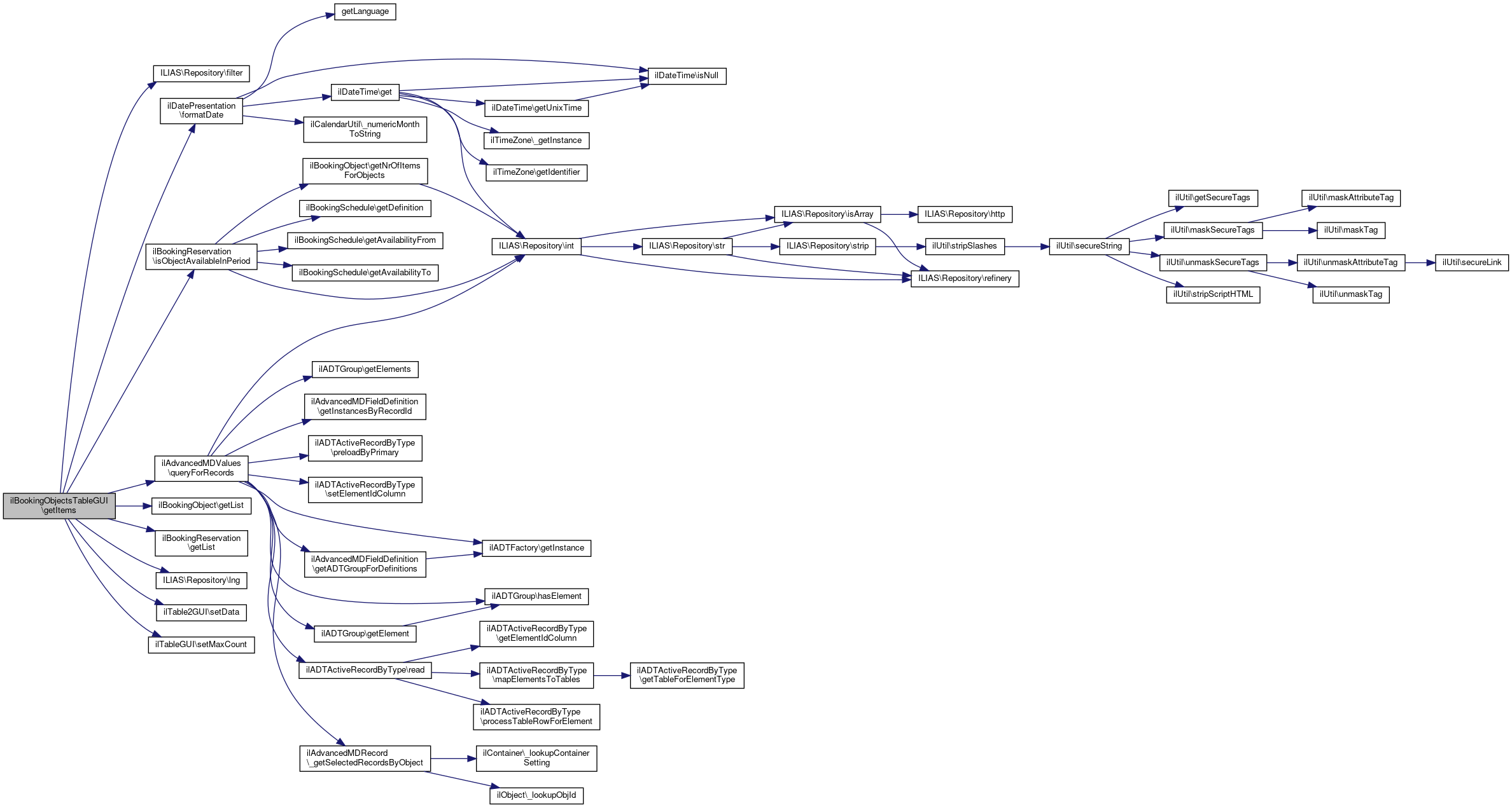 References ilTableGUI\$data, ilTableGUI\$limit, $user, ILIAS\Repository\filter(), ilDatePresentation\formatDate(), ilBookingObject\getList(), ilBookingReservation\getList(), IL_CAL_DATE, IL_CAL_UNIX, ilBookingReservation\isObjectAvailableInPeriod(), ILIAS\Repository\lng(), ilAdvancedMDRecordGUI\MODE_FILTER, ilAdvancedMDValues\queryForRecords(), ilTable2GUI\setData(), ilTableGUI\setMaxCount(), and ilBookingReservation\STATUS_CANCELLED.