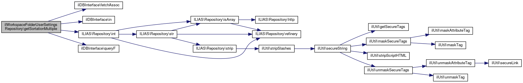 Here is the call graph for this function:| ilWorkspaceFolderUserSettingsRepository::getSortationMultiple | ( | array | $wfld_ids | ) |