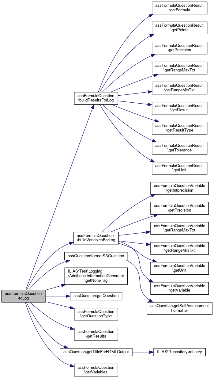 Here is the call graph for this function:| assFormulaQuestion::toLog | ( | AdditionalInformationGenerator | $additional_info | ) |